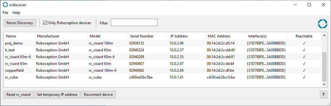 Roboception offers the open-source tool rcdiscover-gui, which can be downloaded free of charge from